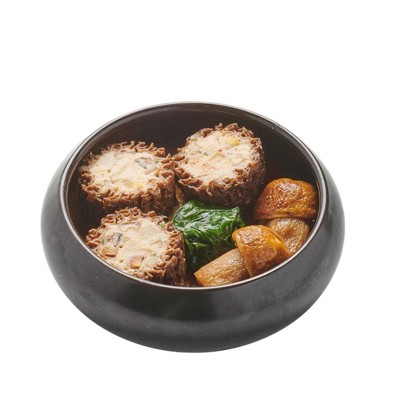 Morilles jumbo farcies à la volaille et champignons eryngii