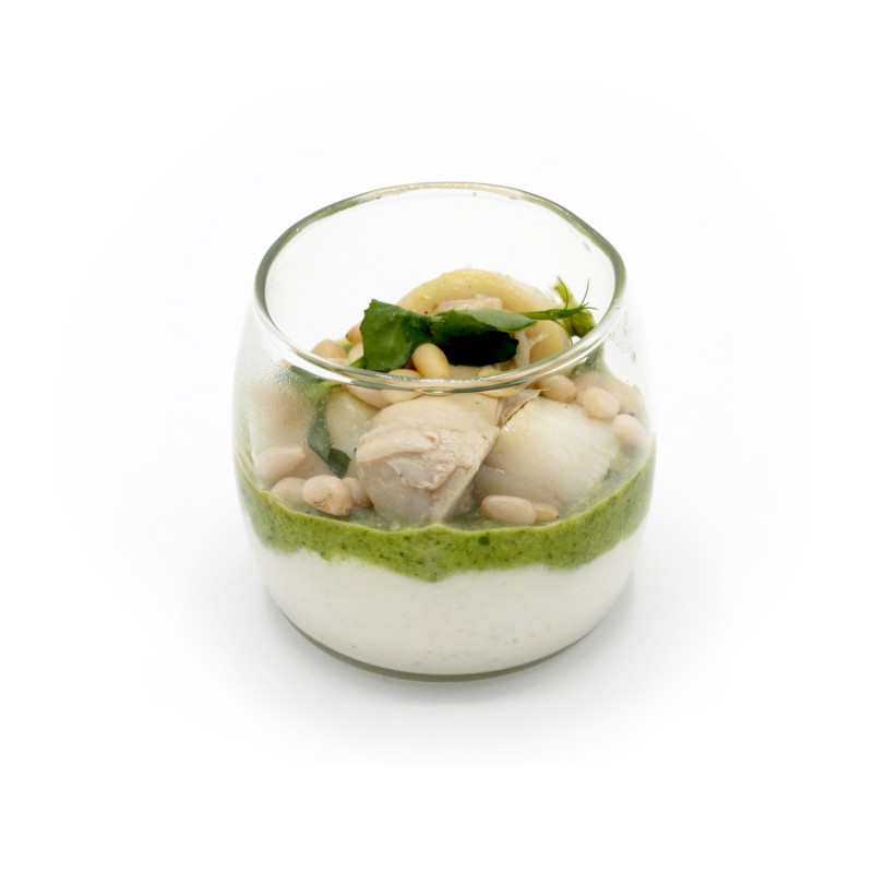 Vertige de St-Jacques, mousseline de topinambour, cèpes poêlés