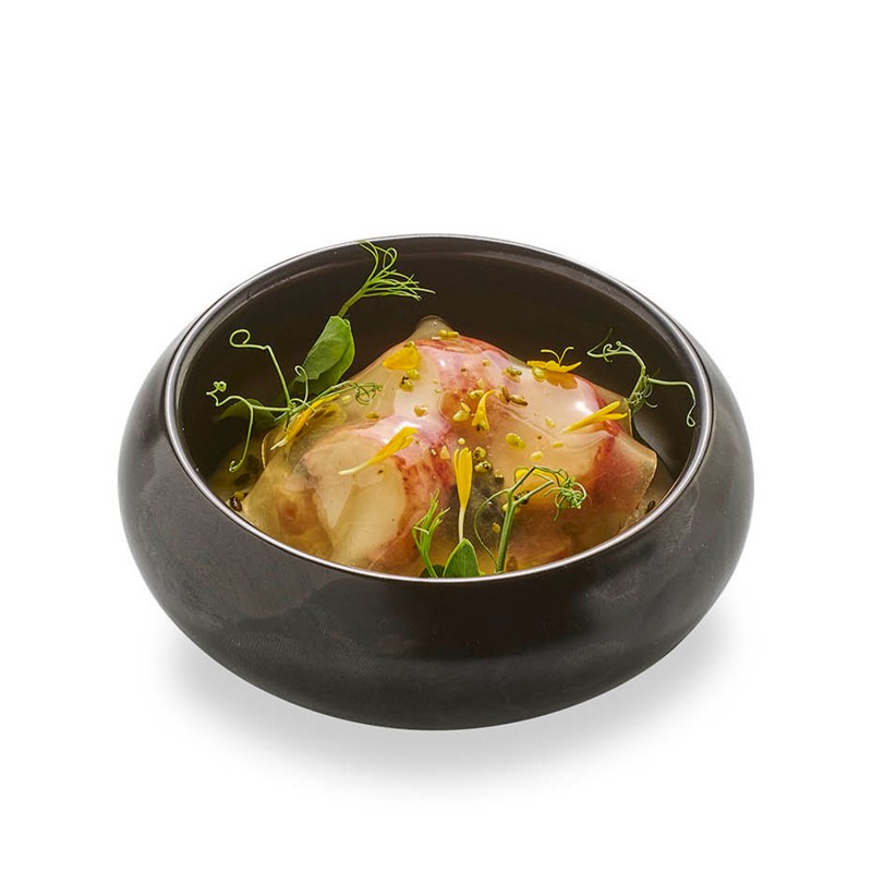 Entrée froide, présentée dans un bol boréal noir non consigné