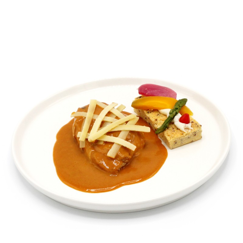 Suprême de volaille (origine France) façon Gaston Gérard, polenta moelleuse à la graine de moutarde et légumes